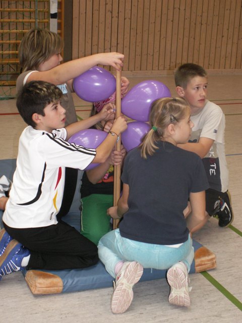 Am Nachmittag gehörte uns die Turnhalle da hatten wir viel Platz für die verschiedensten Aktionen und Spiele. Auch hier war zum Gelingen wieder echter Teamgeist gefragt: